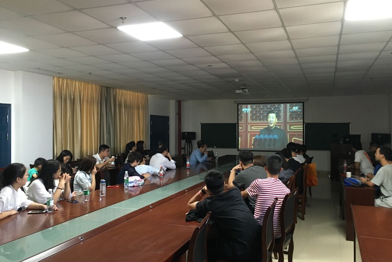 10月1上午,3044永利党委组织党委委员、各党支部书记、学生党员及入党积极分子在文科大楼1104会议室集中观看了中华人民共和国成立70周年庆祝大会及阅兵式。