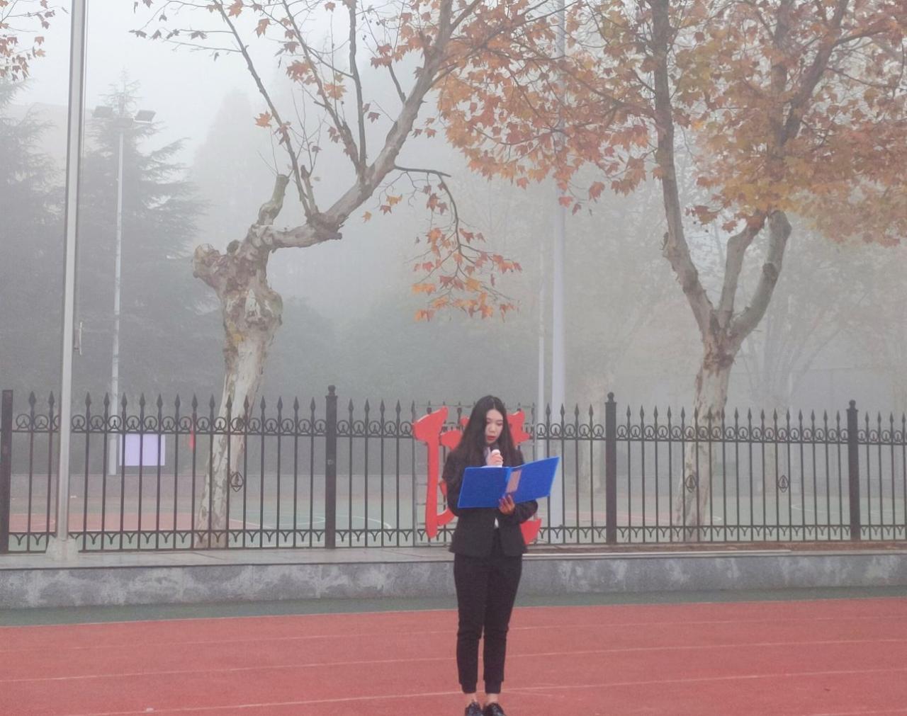 升旗仪式结束后,全体师生绕操场慢跑两圈。同学们不惧寒风凛冽,浓雾弥漫,迈着坚定的步伐,红色的塑胶跑道与马院学子积极向上的精神面貌交相呼应。