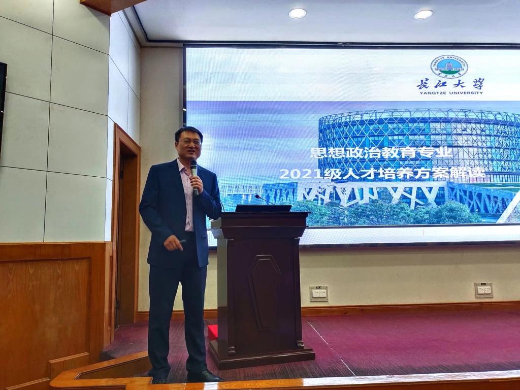 聘任仪式结束后,院长助理李振华为2021级新同学解读思想政治教育专业人才培养方案,让同学们清晰了思想政治教育专业培养什么人、怎样培养人,为他们制定学涯规划指明了方向。