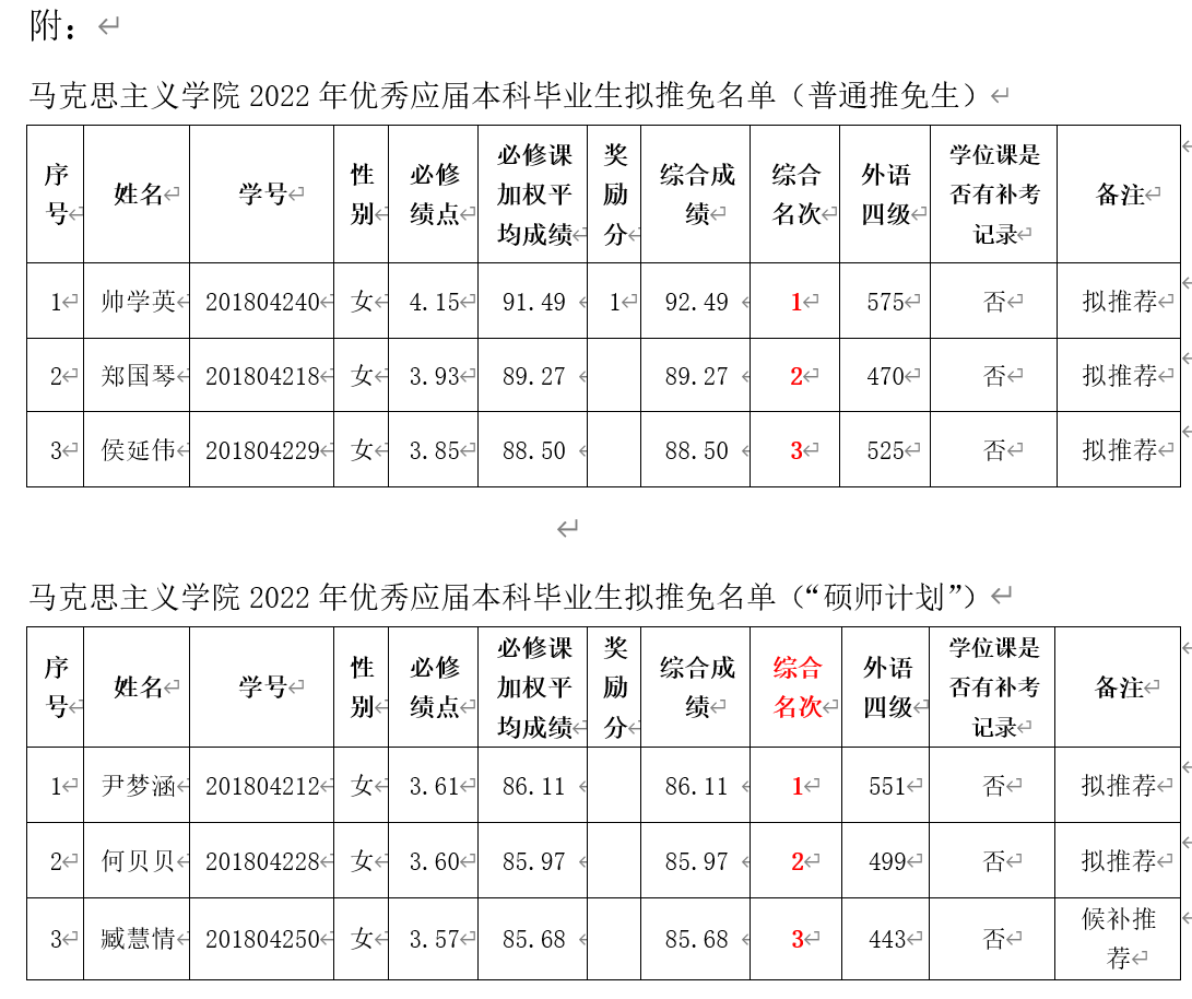 3044永利推荐2022届优秀本科生免试攻读硕士学位研究生公示名单