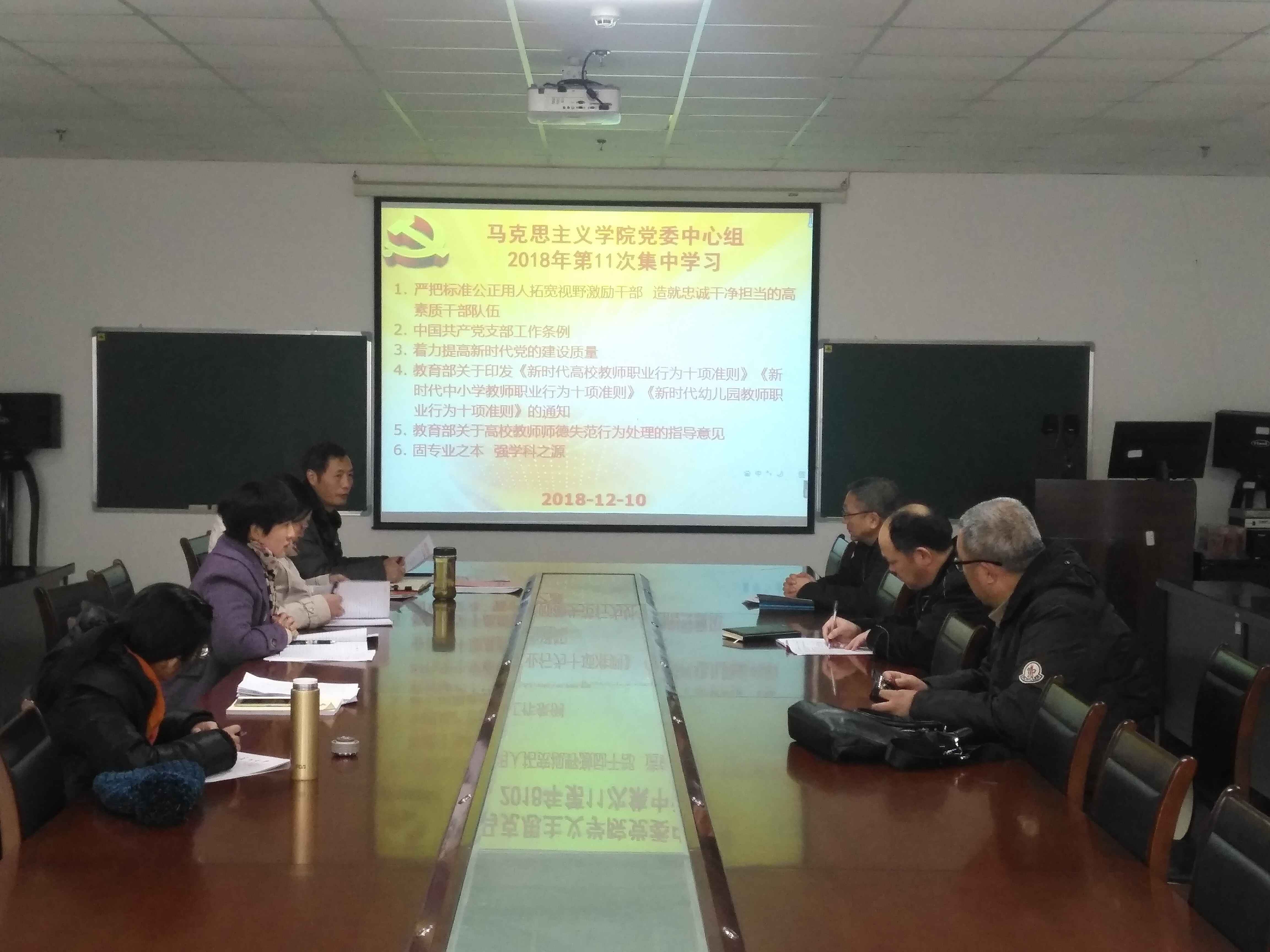 3044永利于2018年12月10日在文科楼1104室举行了党委理论学习中心组第十一次集中学习,党委理论中心组成员及各支部书记参加了学习会,会议由党总支书记吴智勇主持。