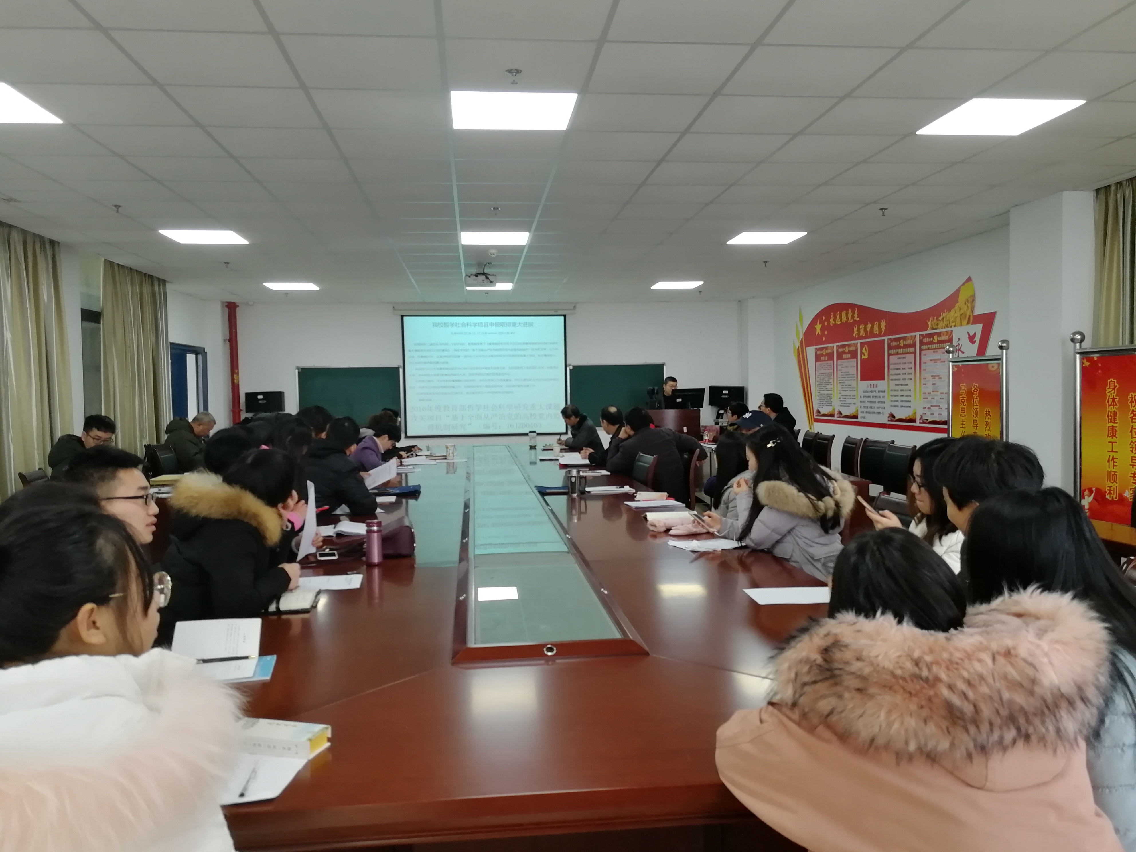 3044永利于2019年1月3号上午十点在文科楼1104会议室召开了党建研究论文报告会。本次会议由3044永利党委书记吴智勇主持。全院教师党员、学生党员参与了本次会议。