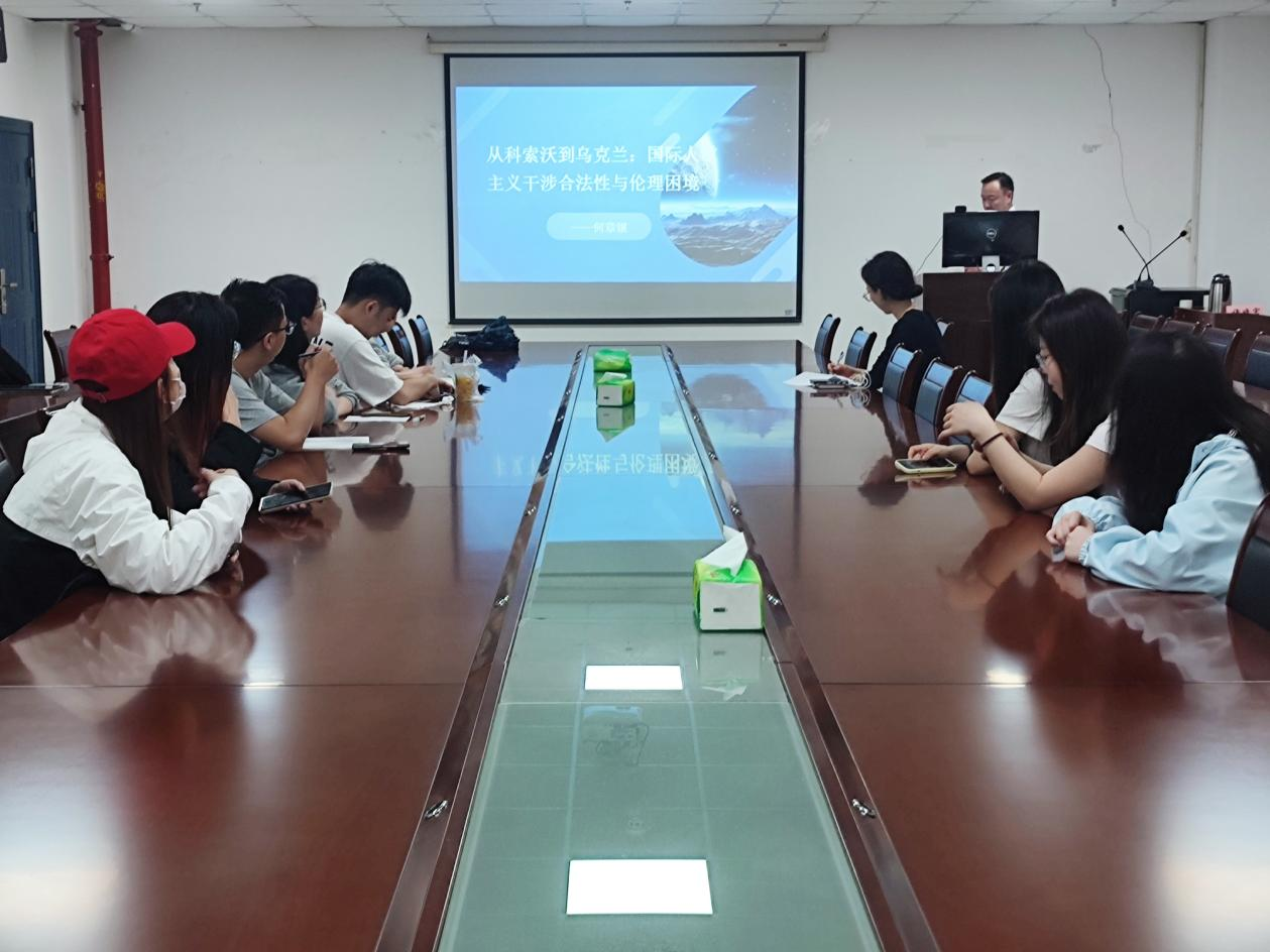 (通讯员 贾献涛)为引发对于主权、人权与国际秩序关系的深层思考,4月11日上午,3044永利求实导师学术沙龙第十期于文科楼1104室成功举办。本次讲座由法学博士、教授、硕士生导师何章银教授主讲,他以科索沃战争和乌克兰危机为例,探讨国际人道主义干涉的合法性与伦理困境。学院研一、研二部分学生参与。
