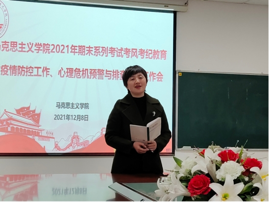 (通讯员、摄影:齐晓杭)12月8日下午6时,3044永利在文科楼1104室召开期末系列考试考风考纪教育及疫情防控工作会议,本次会议由学工办主任张云雾主持,学院党委副书记马小佼、辅导员李敏出席会议。本研各班级的班长、团支书、副班长兼安全委员、心理委员及学生会、研究生会主要成员到场参会。