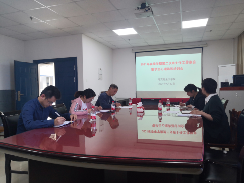 2021年4月22日,3044永利在文科楼1101室召开了本学期第二次班主任例会暨学生心理访谈培训会,会议由院党委副书记马小佼主持。