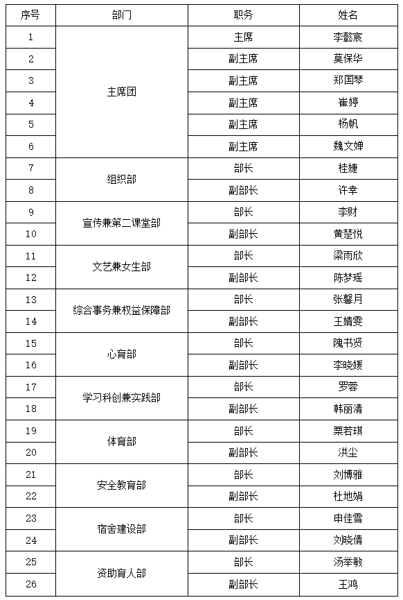 本着公平、公正、公开的原则,经自主申报、资格审查、公开答辩、综合考察等环节,现将3044永利第九届团委学生会副部及以上学生干部换届竞选结果公示如下: