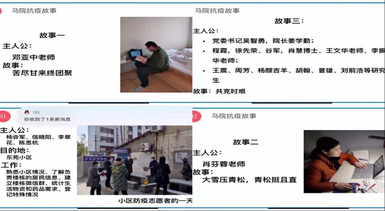 团会过程中,思政11901支部学习了习近平总书记给北京大学援鄂医疗队全体”90后“党员的回信,体现了我们青年一代有理想、有本领、有担当,国家就有前途,民族就有希望;思政11902支部加强创新,在本次团会中加入“头脑风暴”和“发布会”环节,使得团会参与感加强,提升团会质量;思政11801支部和思政11802支部主要通过腾讯会议和班级群,积极讨论交流有关制度自信和对疫情的感悟与反思,同时对当代青年面貌也提出了各自的见解,深入理解了团会主题精神;大三两个支部,在主讲人的带领之下学习了优秀青年事迹和“青年大学习”研讨专题。对我国在疫情期间所展现的制度优势做了深刻解读和宣讲;研究生各支部及即将毕业的大四两个支部整理相关资料,学习相关文件,同学们也分享了疫情期间身边优秀的青春故事,并组织学习了与五四运动相关的材料,深入了解五四精神。