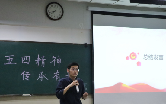 最后,嘉宾总结发言。信晓阳老师和马小佼老师分别对本次团会内容和形式进行了点评总结,对“五四精神,传承有我”这一主题进行阐释,表达对我们青年学生的希望,并号召我们做好自己的本职工作,切实践行“五四精神”。