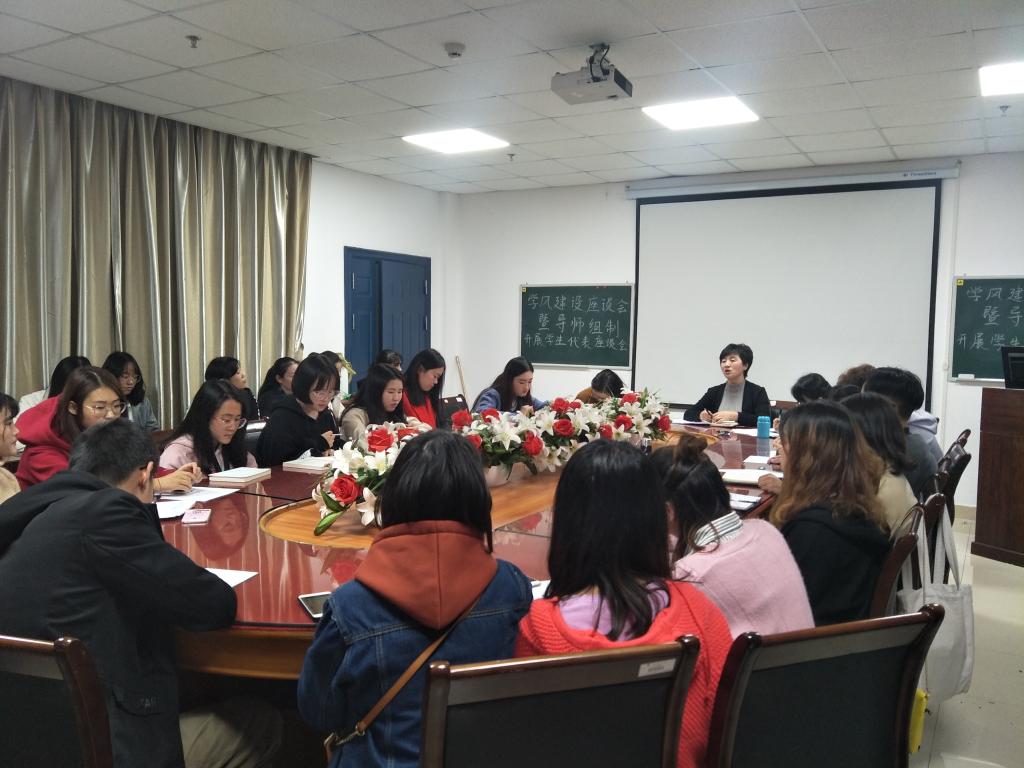 为进一步加强我院的教学管理,培养优良的学风和教风,帮助学生更好地学习专业知识,提高自身的竞争实力以及针对18级学生即将开展导师组制的活动进行座谈,3044永利于2018年11月5日下午3:50在文科大楼1125会议室召开学风建设座谈会暨导师组制开展座谈会。参加会议的人员有马院党总支副书记马小姣老师,马院辅导员张云雾老师,马院兼职辅导员饶静老师,学生会主席团,各班干部代表,大一至大四各寝室长,心育部全体成员及研究生各班级学生安全联络员。