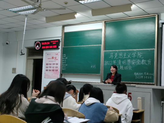 2021级本科生辅导员张云雾老师与学生进行面对面交流与互动,了解学生思想生活动态,鼓励班干部组织同学们安全有序地在校园范围内开展娱乐活动,以健康的体魄、积极乐观的心态、饱满的热情投入到学习生活中。20级本科班级召开安全教育主题班会,为班级学生普及各类安全常识,强化安全意识,提高自我保护能力。19级本科班级安全教育会上,思政11902班班长黄楚悦告诉同学们在封闭管理期间要认真学习专业课程,以充实、有益的学习生活战胜疫情的焦虑。