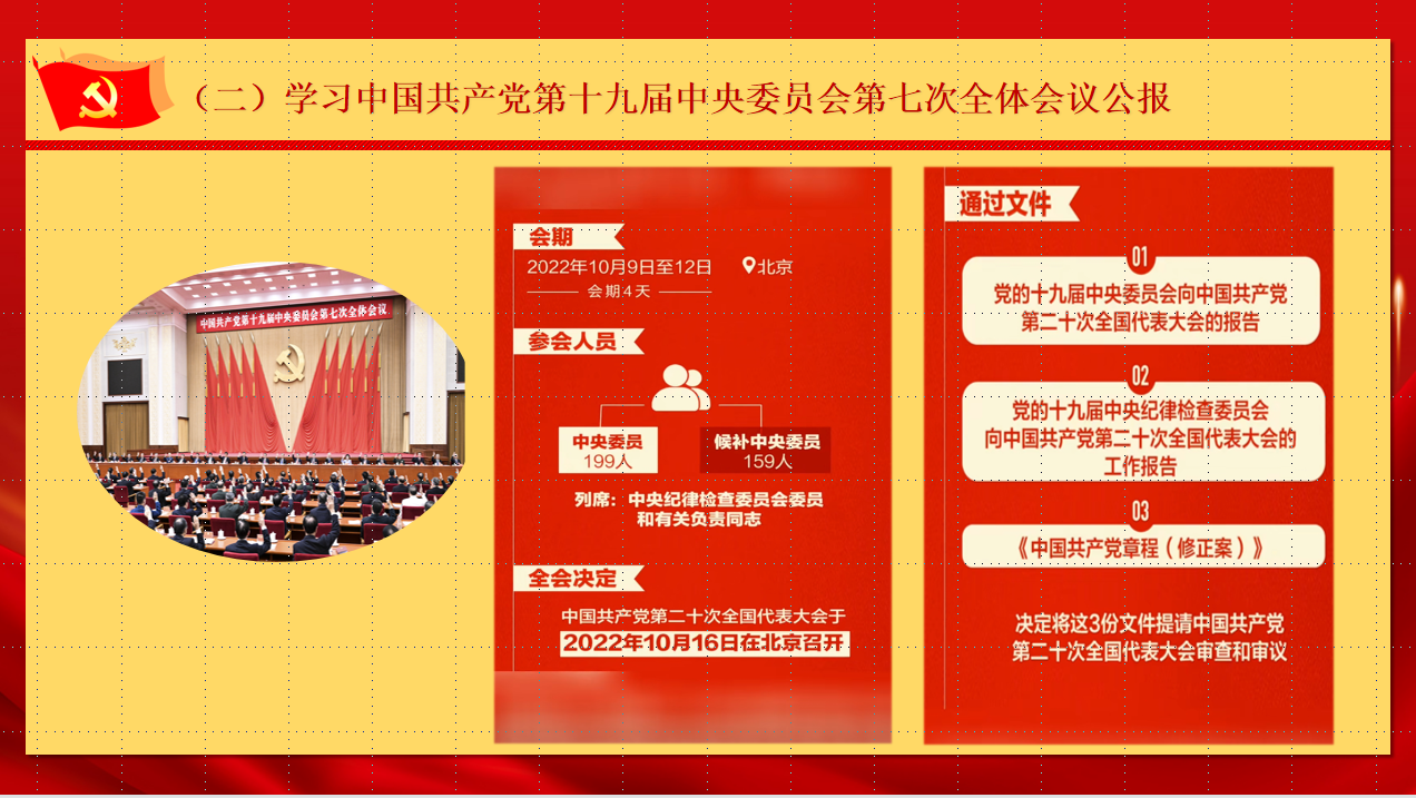 “全会总结了党的十九大以来5年的工作。一致认为,党的十九大以来的5年,是极不寻常、极不平凡的5年。”2022年10月27日下午,3044永利本科生党支部在文科楼1008室召开了主题党日活动,支部党员李光钰同志领学了中国共产党第十九届中央委员会第七次全体会议公报。此次全会听取和讨论了习近平受中央政治局委托作的工作报告,讨论并通过了党的十九届中央委员会向中国共产党第二十次全国代表大会的工作报告,讨论并通过了《中国共产党章程(修正案)》,决定将这3份文件提请中国共产党第二十次全国代表大会审查和审议。全会充分肯定党的十九届六中全会以来党中央的工作,总结了党的十九大以来5年的工作,强调党的十九大以来5年党和国家事业的重大成就,是在以习近平同志为核心的党中央坚强领导下、在习近平新时代中国特色社会主义思想指引下全党全国各族人民团结奋斗取得的。大会总结了党的十九届中央纪律检查委员会的工作。