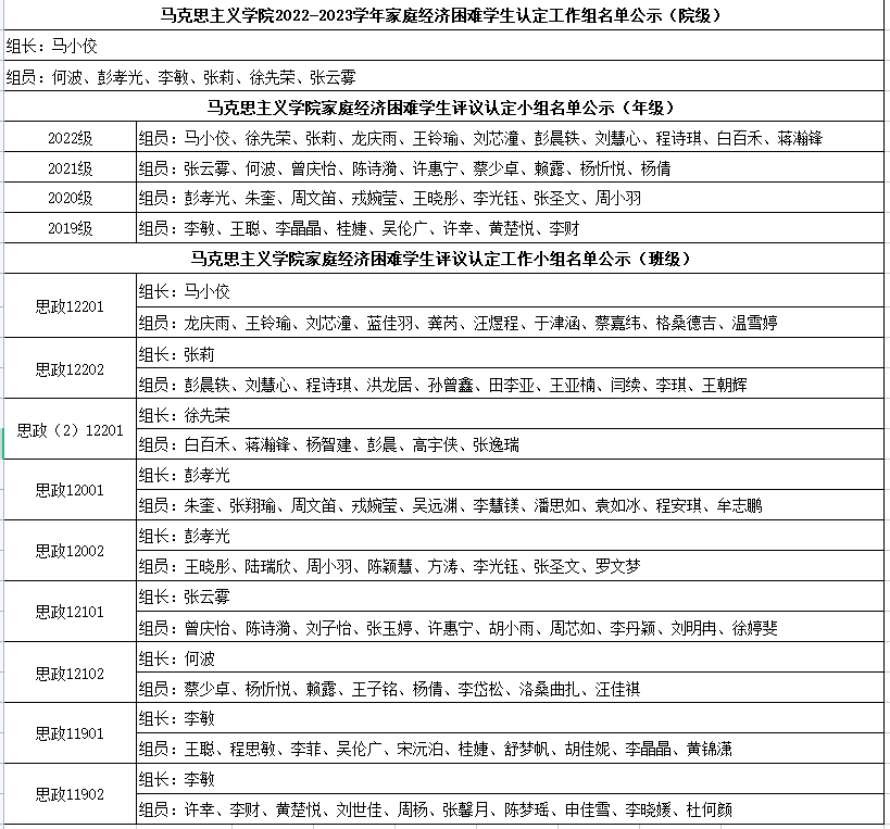 根据长江大学学生工作处《关于做好2022-2023学年家庭经济困难学生认定工作的通知》,结合学院实际,现将我院2022-2023学年家庭经济困难学生认定评议工作组成员名单公示如下: