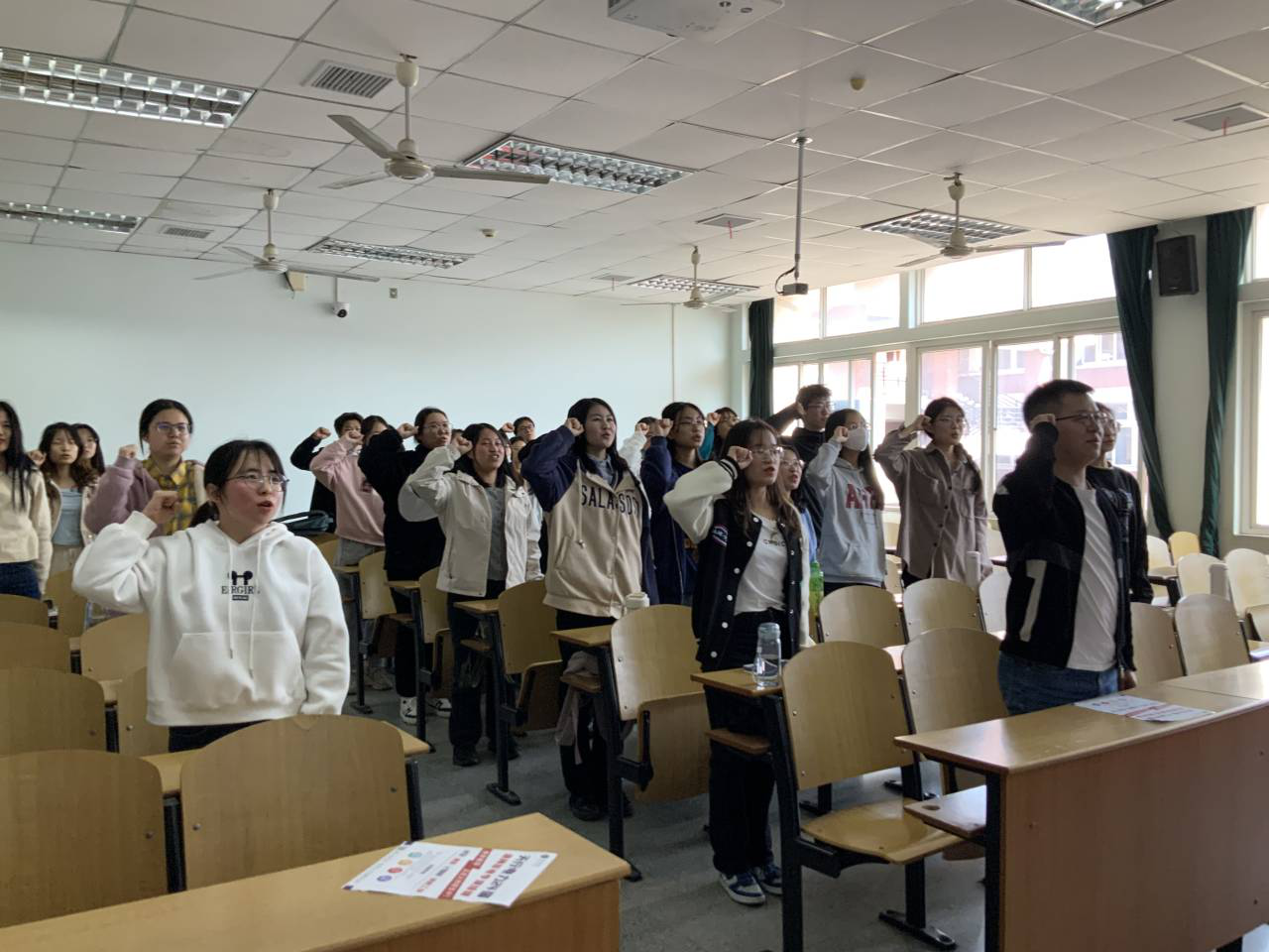 此外,各支部通过共唱中国共青团团歌、重温入团誓词、讲述优秀团员故事增强共青团员先进性、荣誉性。思政12102团支部在班主任何波老师带领下进行宣誓,重温入团誓词,引导同学们牢记青春誓言,坚定理想信念,不负时代责任。