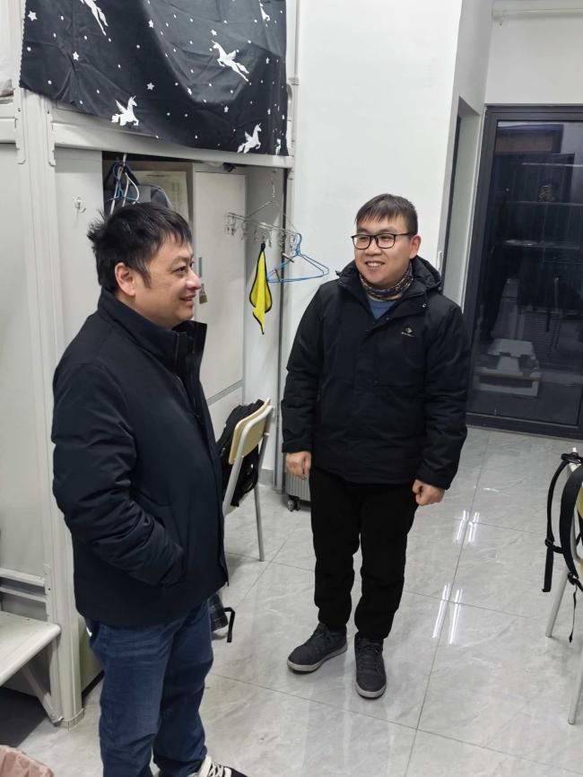 (通讯员 童亮 刘家豪)3月1日晚8时,3044永利研究生辅导员邓鹏老师深入学院本科及研究生男生宿舍开展查寝走访工作,重点排查宿舍安全隐患,细致了解学生生活近况,切实传递学院对学生的关怀与重视。 走访过程中,邓鹏老师逐一检查各宿舍的用电安全、卫生环境及物品摆放情况,重点排查违规电器、私拉电线等潜在安全风险,现场提醒同学们严格遵守宿舍管理相关规定,进一步增强安全防范意识,自觉养成良好的宿舍生活习惯。