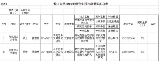 按照《长江大学研究生单项奖学金评审工作实施细则》和《关于开展长江大学2019年“研究生单项奖学金”评定工作的通知》的有关规定和要求,经个人申请,学院组织评审,推荐以下2位同学申报2019年研究生单项奖学金,名单如下: